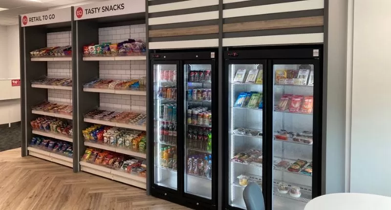 Six months after install, staff at the company are enjoying this 24/7 unattended facility equipped with all manner of quality refreshments from fresh bean coffee to fresh food, with an automated service that handles replenishment and maintenance.
