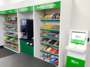 The arrival of the Micro Market in our showroom now encourages our staff to take a beneficial break time. We promote break time as a simple way for employees to recharge, as they will be more productive upon heading back to their desks. The Micro Market has products for the working day and beyond, and its open nature means that our staff can browse all products prior to purchase, viewing key information such as calories and allergens.