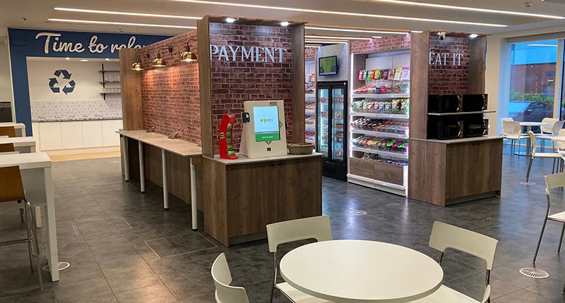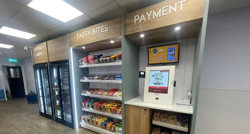 Imagine a miniature, high-tech supermarket in your workplace, with open shelving, self-service contactless payment kiosks and a bespoke design to finish. A 24/7 self-service canteen with an automated approach that employs user data to provide the service.