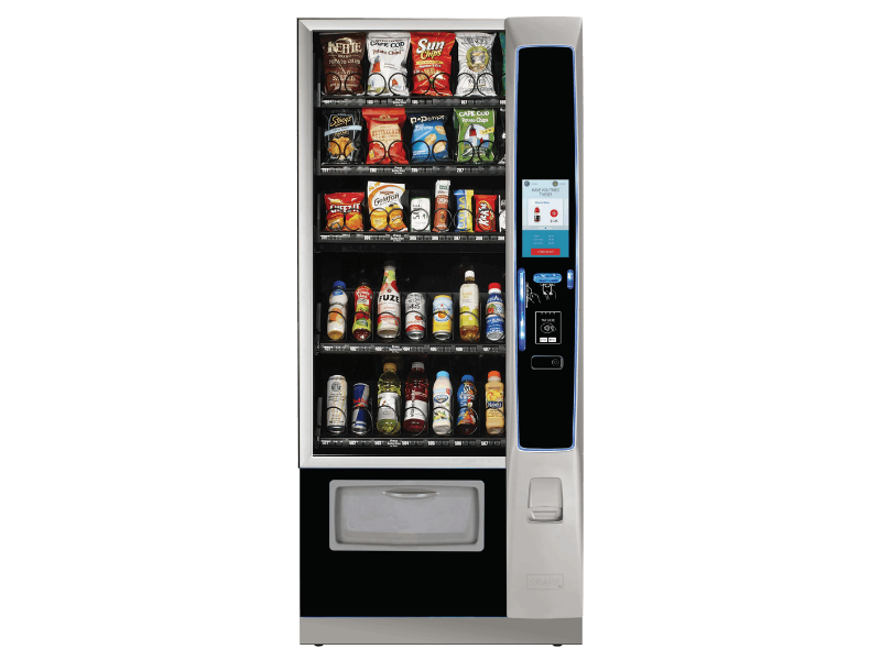 - Flexible configuration allowing snacks, confectionery, bottles and cans in one snack and cold drinks vending machine.