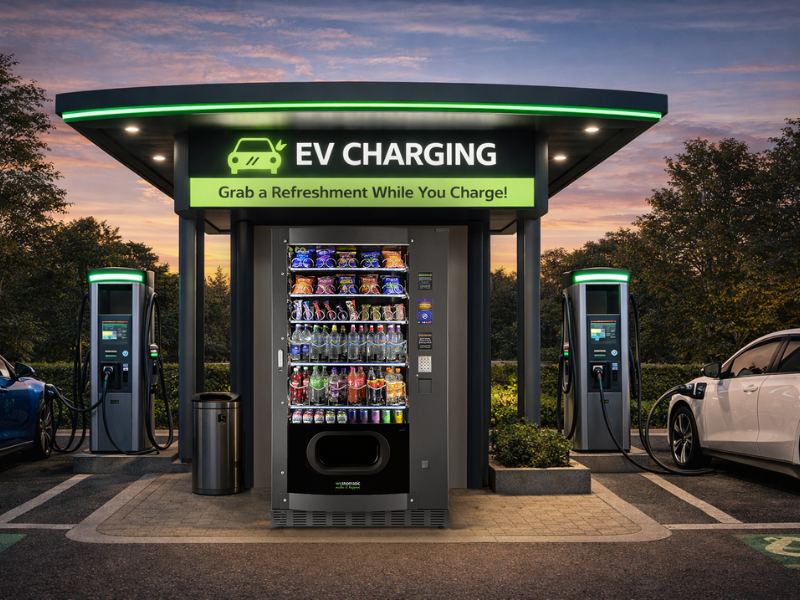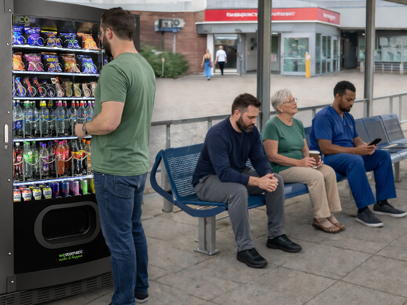 - Flexible product configuration offering snacks and confectionery in high-footfall outdoor areas.